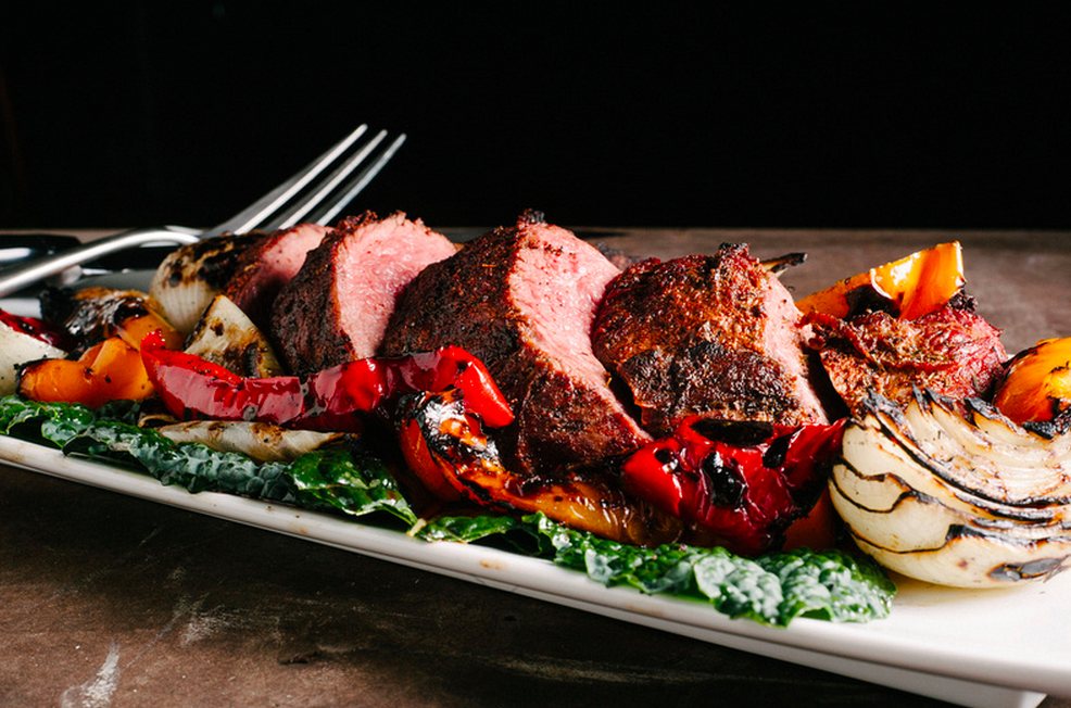 . Combine the ingredients then coat both sides of the steaks with the mixture. Dip the towel in avocado oil or other high-heat oil such as safflower or canola and rub down. Pan Seared Bison Fillet with Green Chili Potato Puree and Maple Nut Brown Blackberry Port Sauce.